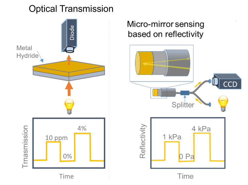 Metal-hydride based optical hydrogen sensors can provide an alternative for many applications. They have the potential to be made cheap, operate without the presence of hydrogen, sense a very larger range of hydrogen concentrations/pressures (low to high) with a high resolution, operate under a larger temperature window and with a fast response. Furthermore, they are intrinsically safe as the read-out is purely optical without any optical sparks. For example, the tantalum-based optical hydrogen sensor developed and patented by TU Delft have, measured in an environment of hydrogen with an inert gas, a sub-second response that is completely free of any hysteresis across over 7 orders of magnitude in partial hydrogen pressure/concentration.